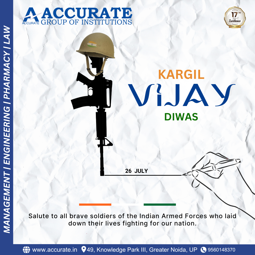 Honoring the bravery and sacrifice of our soldiers on Kargil Vijay Diwas. Their courage inspires us every day. Accurate Group of Institutions salutes our heroes who fought for our nation’s pride and freedom. Jai Hind!