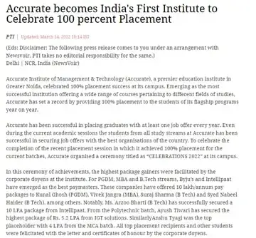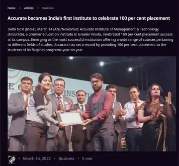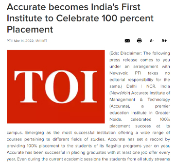 The Accurate Institute of Management & Technology, a premier education institute in Greater Noida, celebrated 100% placement success at its campus.