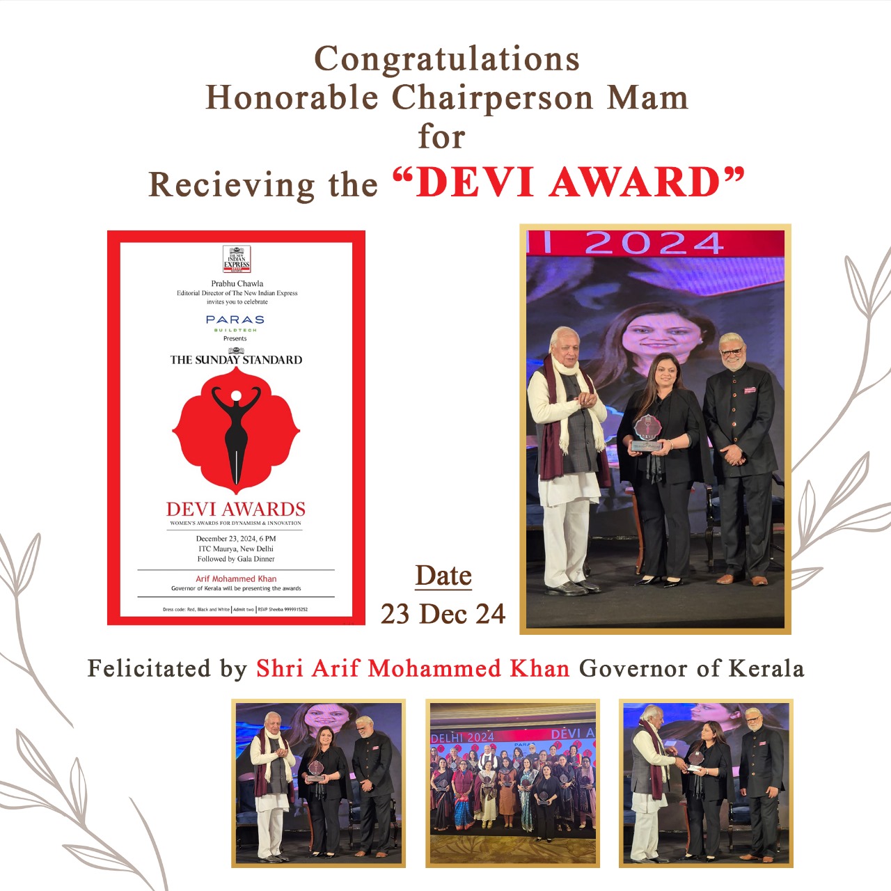 Heartiest Congratulations to our esteemed Chairperson on being honored with the prestigious Devi Award!