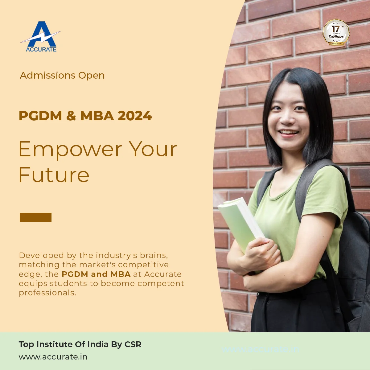 Accurate Equipe's PGDM & MBA programs are meticulously crafted by industry leaders, ensuring alignment with market demands. Our curriculum focuses on practical skills, strategic thinking, and leadership development, empowering students to excel in their careers as highly skilled and competent professionals.